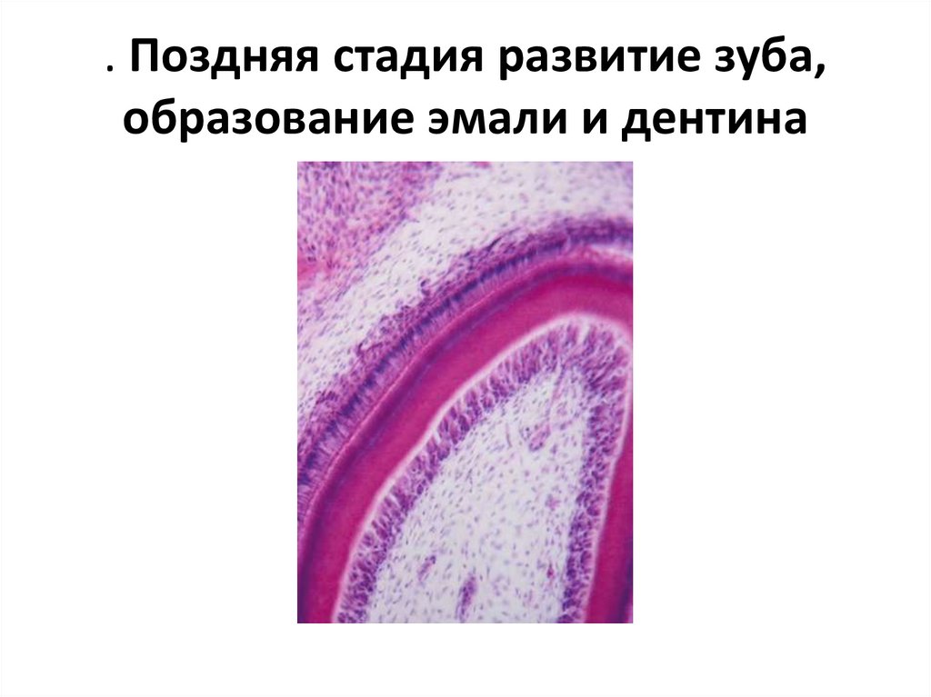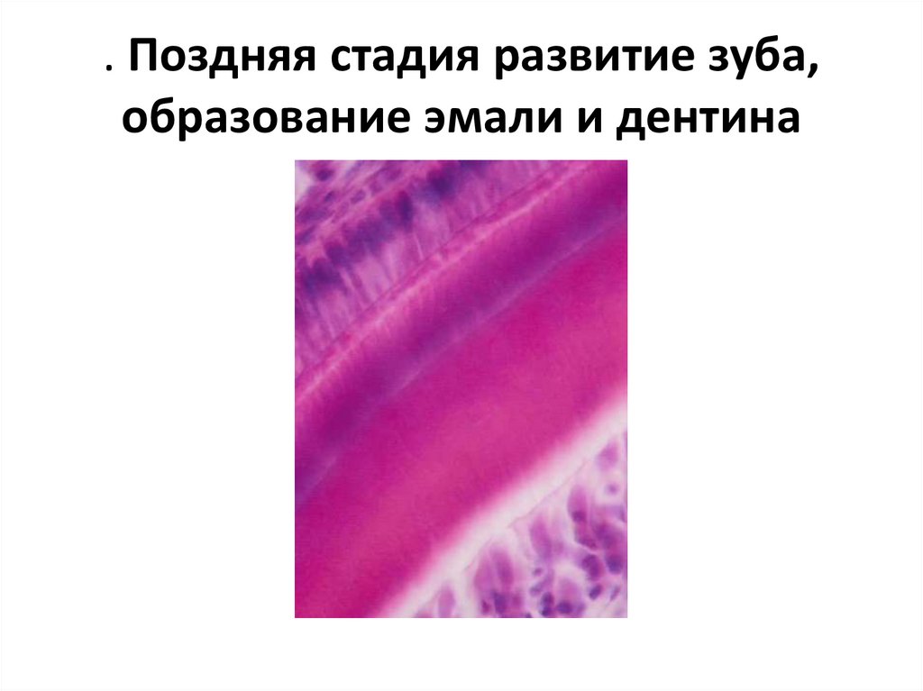 Поздняя стадия развитие зуба,образование эмали и дентина