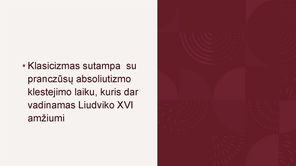 • Klasicizmas sutampa supranczūsų absoliutizmo