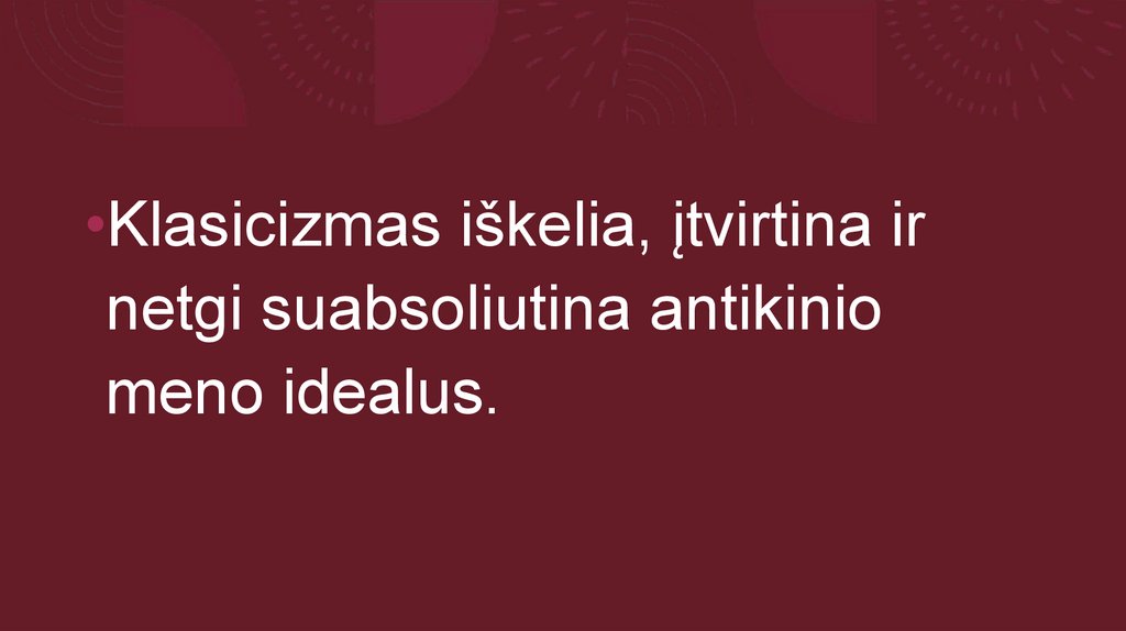 •Klasicizmas iškelia, įtvirtina irnetgi suabsoliutina antikinio