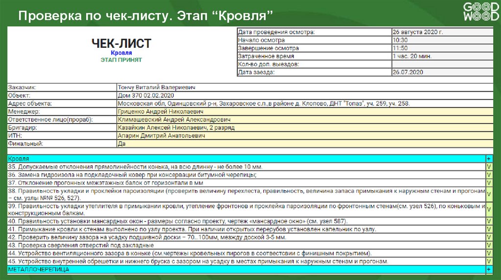 Проверка по чек-листу. Этап “Кровля”15.