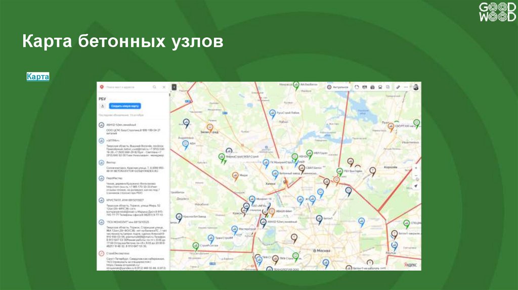 Карта бетонных узловКарта