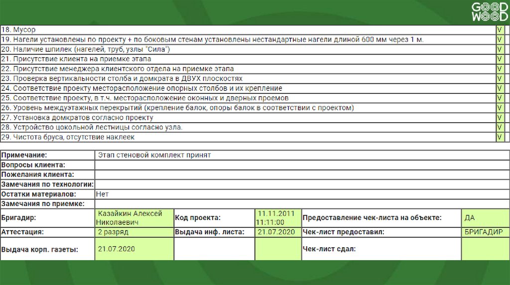 Проверка по чек-листу. Этап “Стеновой комплект”9.