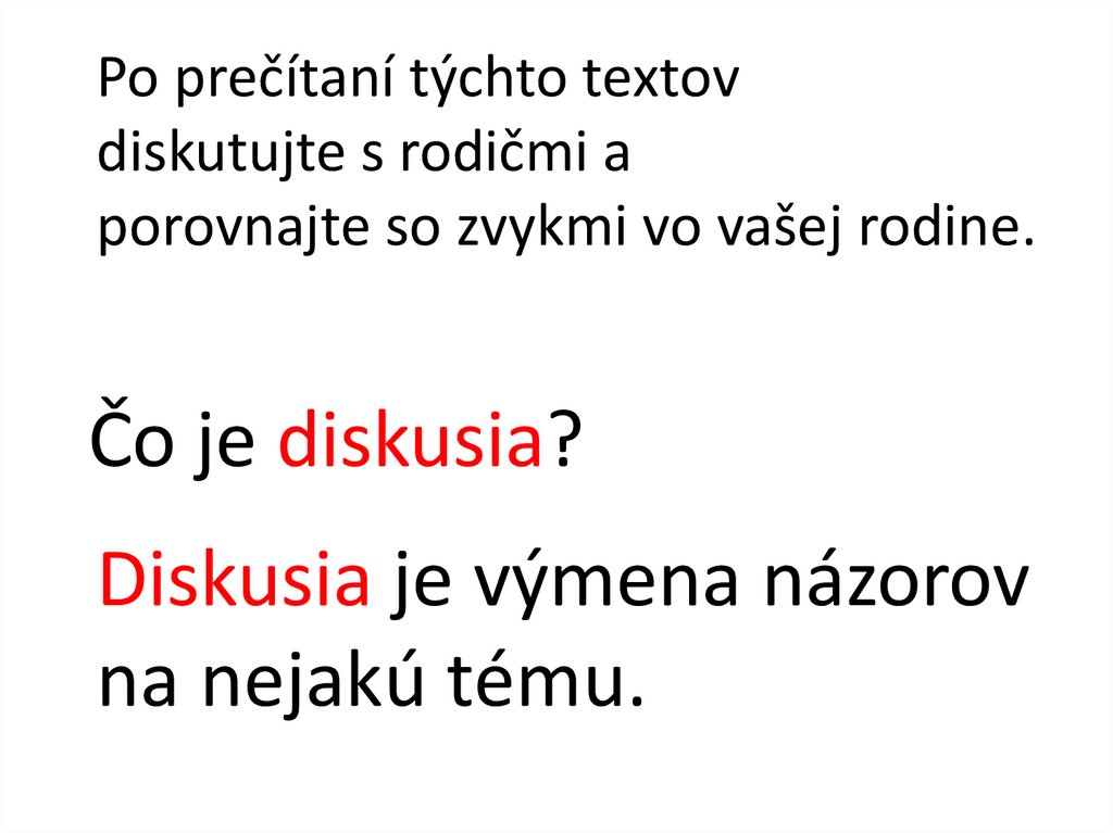 Po prečítaní týchto textovdiskutujte s rodičmi a