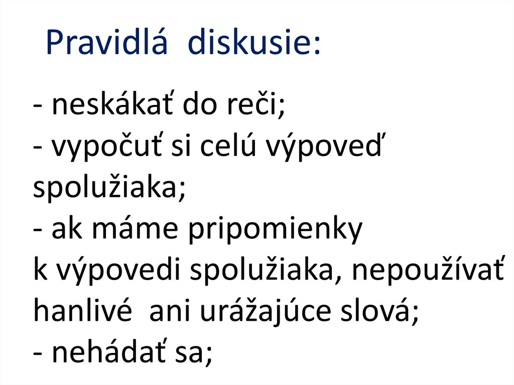 • Neskáčeme si do rečí, vypočujeme