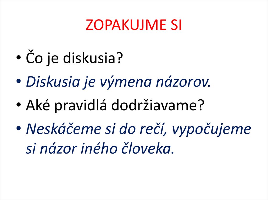 ZOPAKUJME SI• Čo je diskusia?