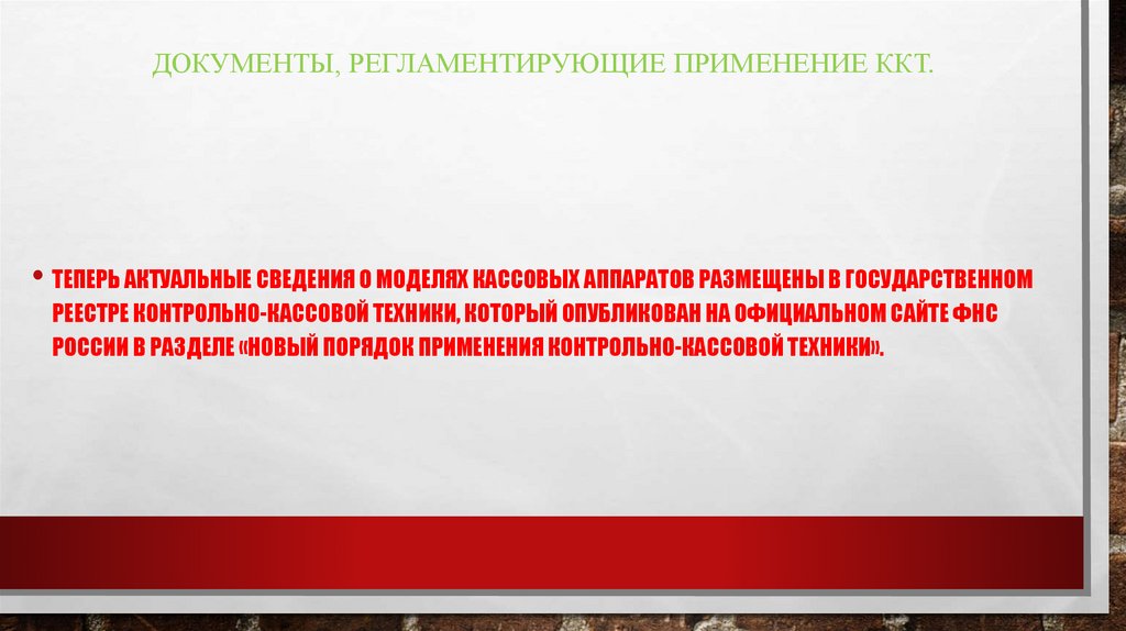 ДОКУМЕНТЫ, РЕГЛАМЕНТИРУЮЩИЕ ПРИМЕНЕНИЕ ККТ.• ТЕПЕРЬ АКТУАЛЬНЫЕ СВЕДЕНИЯ О МОДЕЛЯХ КАССОВЫХ АППАРАТОВ РАЗМЕЩЕНЫ В ГОСУДАРСТВЕННОМ