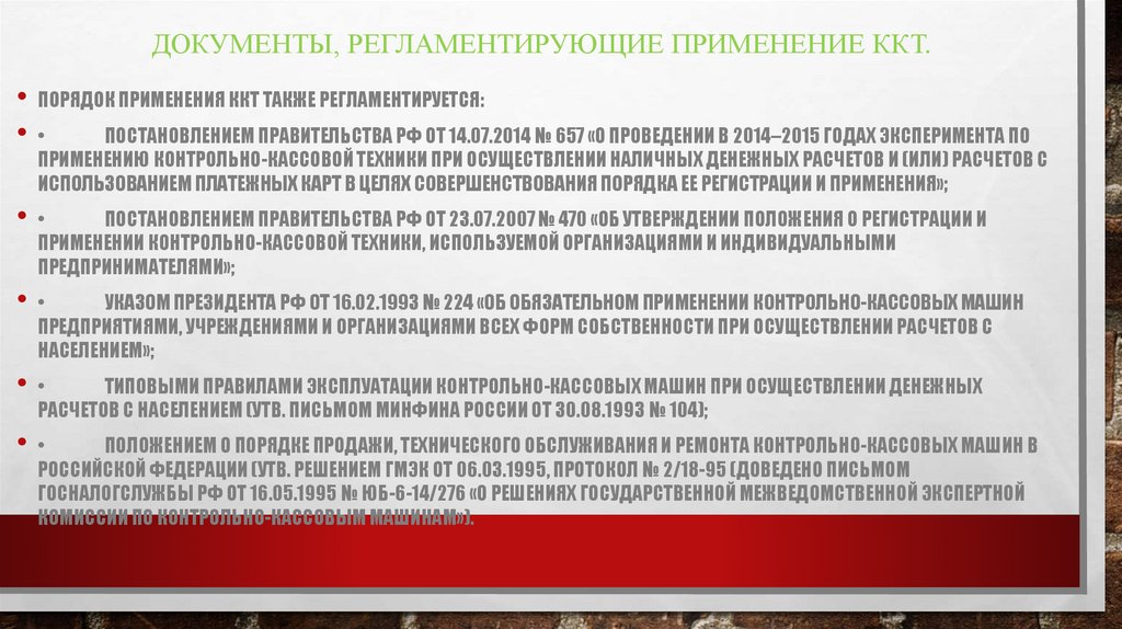 ДОКУМЕНТЫ, РЕГЛАМЕНТИРУЮЩИЕ ПРИМЕНЕНИЕ ККТ.ПОРЯДОК ПРИМЕНЕНИЯ ККТ ТАКЖЕ РЕГЛАМЕНТИРУЕТСЯ:
