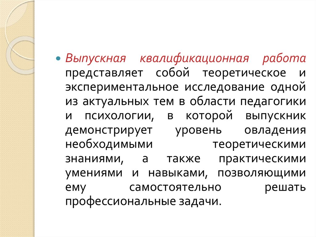 Выпускная квалификационная работапредставляет собой теоретическое и