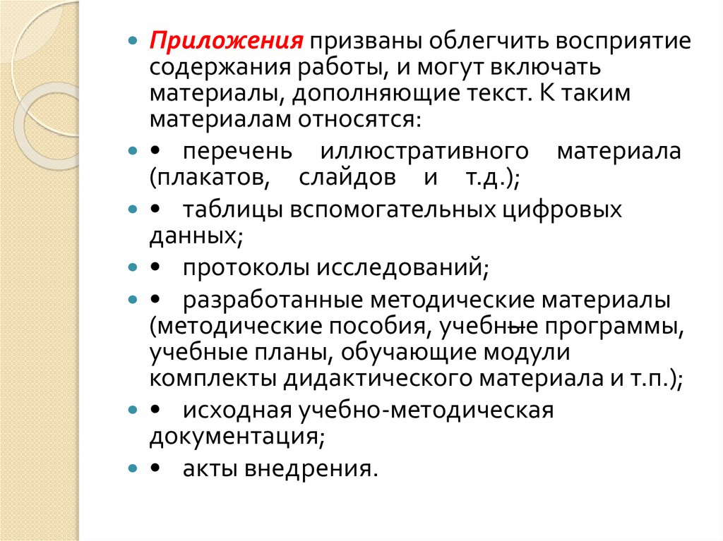 Приложения призваны облегчить восприятиесодержания работы, и могут включать