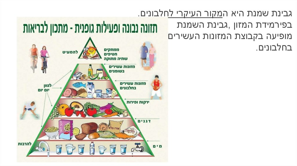 גבינת שמנת היא המקור העיקרי לחלבונים.בפירמידת המזון ,גבינת השמנת