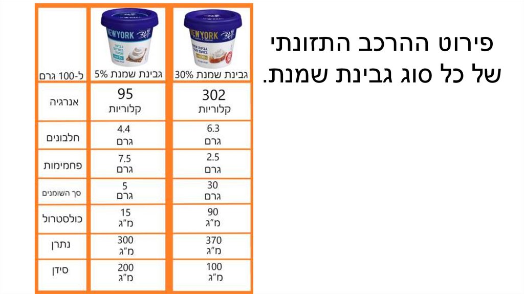 פירוט ההרכב התזונתישל כל סוג גבינת שמנת.