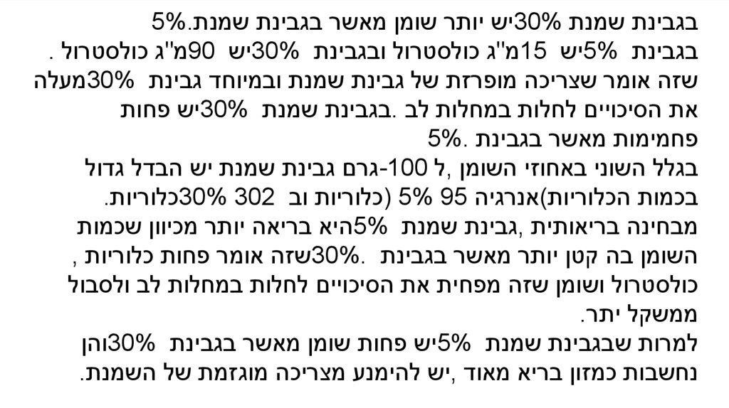 בכמות הכלוריות(אנרגיה ) 5% 95כלוריות וב 30% 302כלוריות.