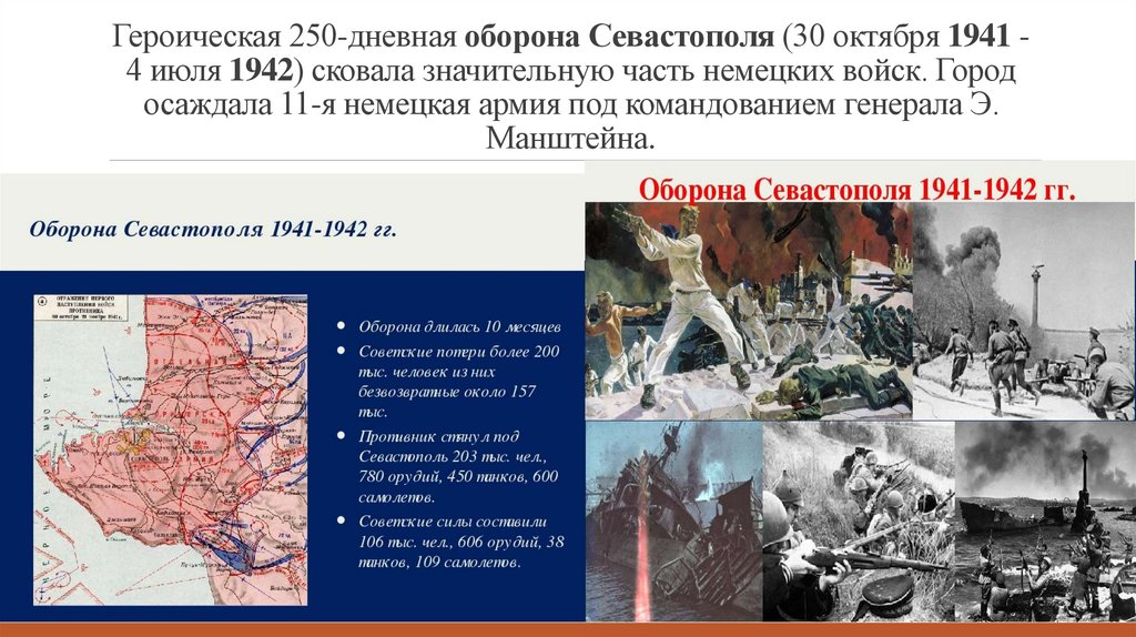Героическая 250-дневная оборона Севастополя (30 октября 1941 4 июля 1942) сковала значительную часть немецких войск. Город