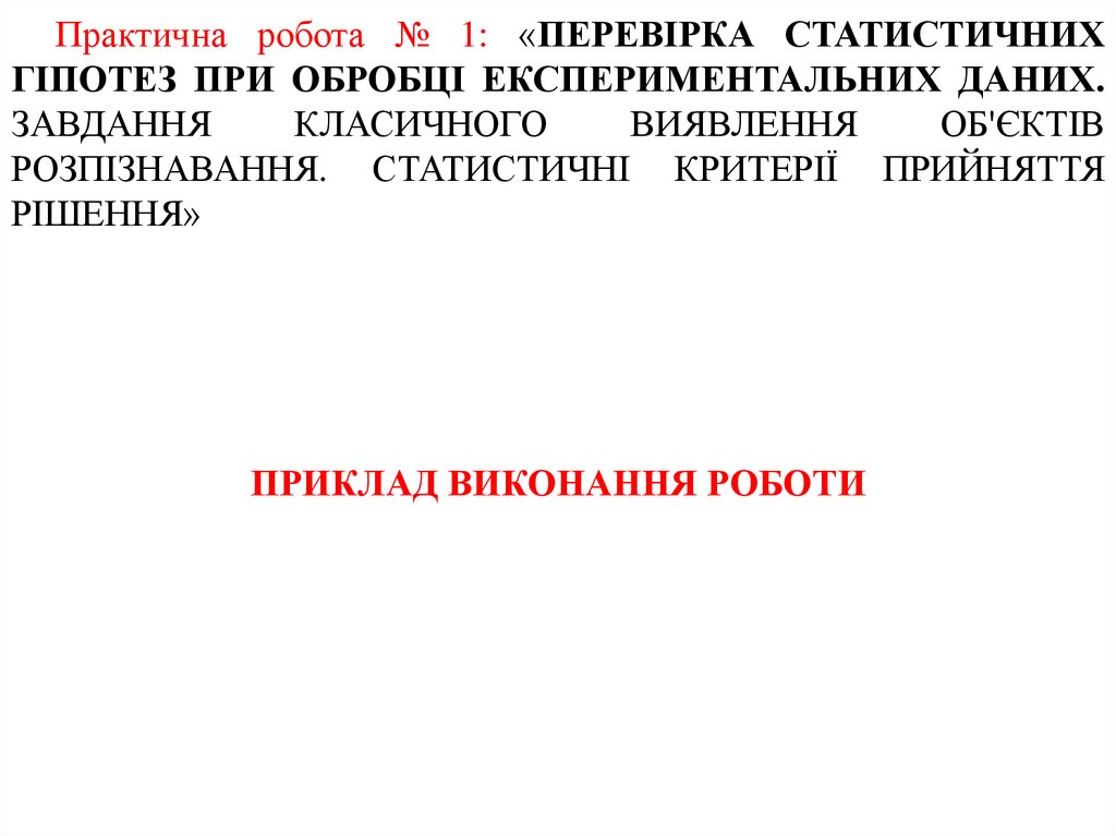 Практична робота № 1: «ПЕРЕВІРКА СТАТИСТИЧНИХГІПОТЕЗ ПРИ ОБРОБЦІ ЕКСПЕРИМЕНТАЛЬНИХ ДАНИХ.
