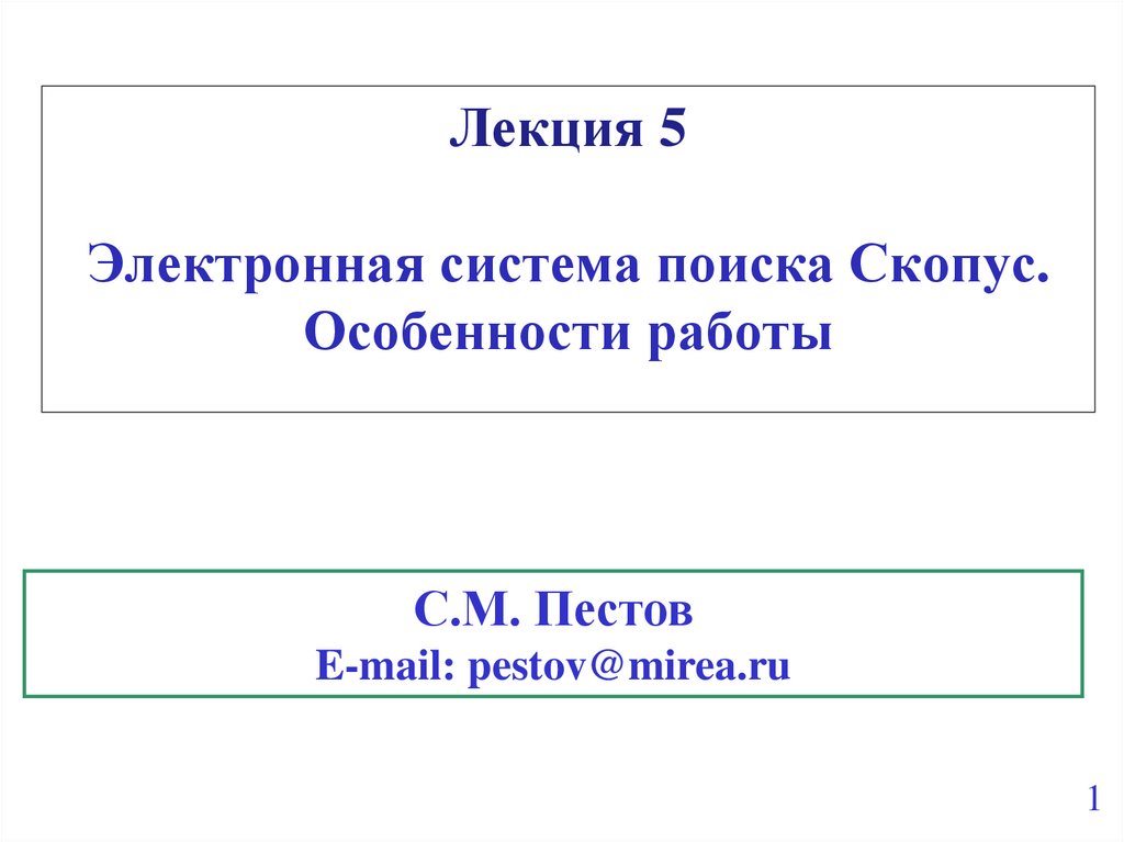 1. Лекция 5 Электронная система поиска Скопус. Особенности работы