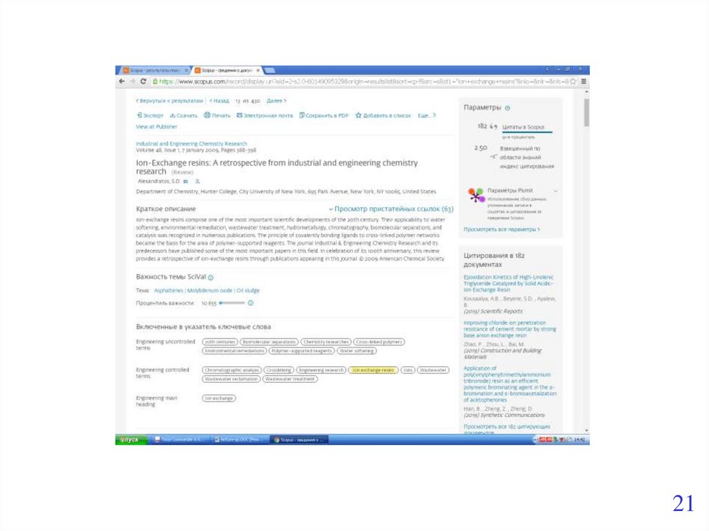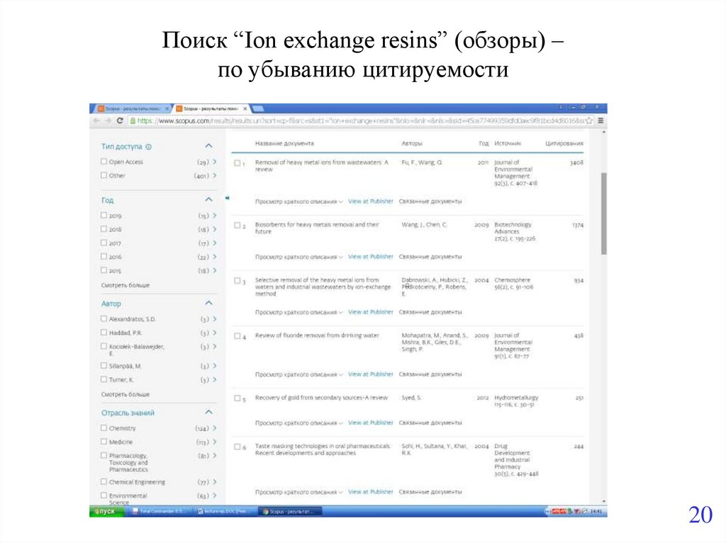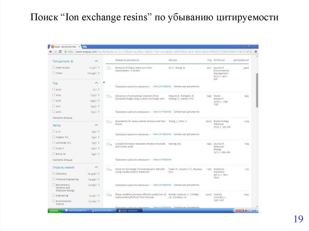 Поиск “Ion exchange resins” по убыванию цитируемости19