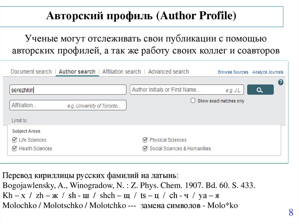 Авторский профиль (Author Profile)Ученые могут отслеживать свои публикации с помощью