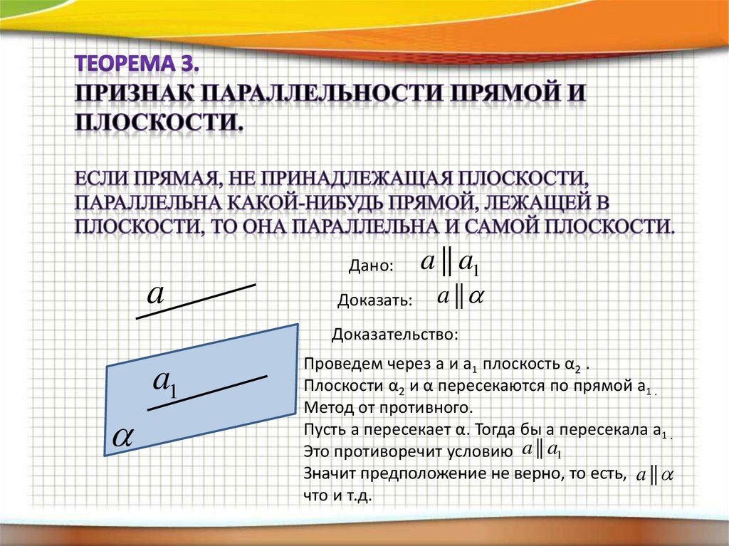 Пусть a пересекает α. Тогда бы a пересекала a1 .
