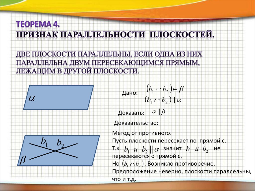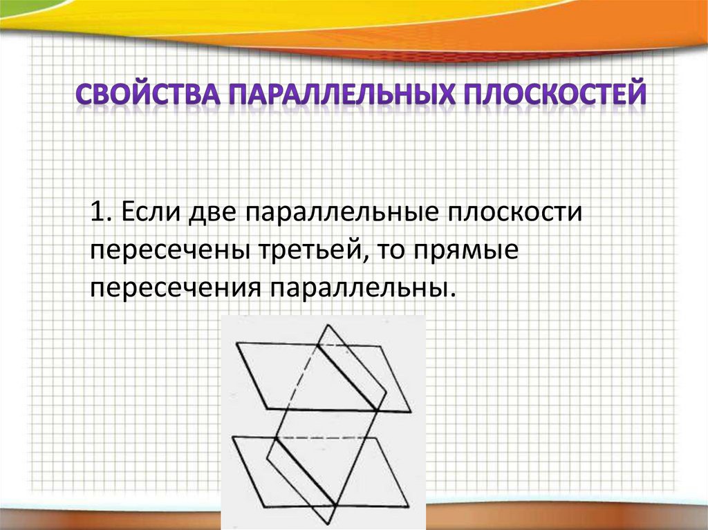 1. Если две параллельные плоскостипересечены третьей, то прямые
