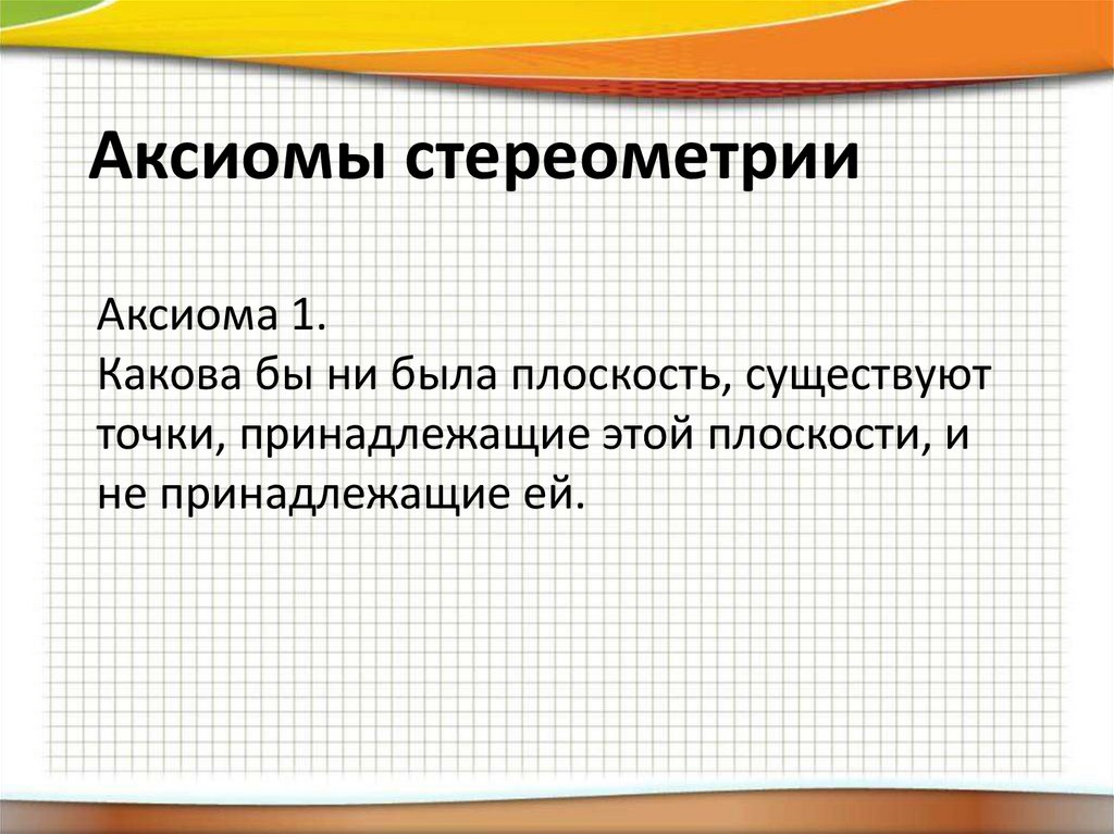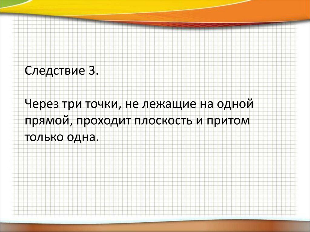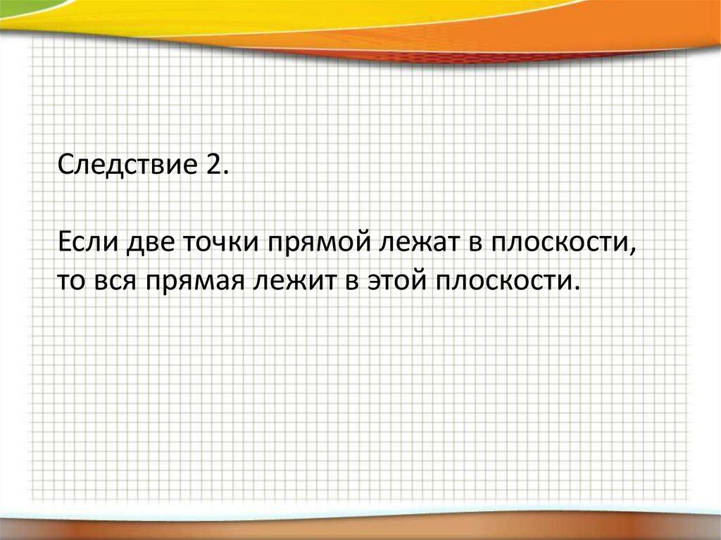 Следствие 2.Если две точки прямой лежат в плоскости,