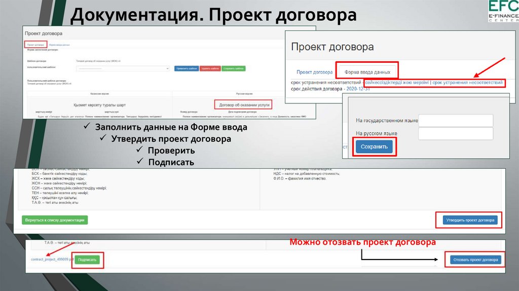 Документация. Проект договораЗаполнить данные на Форме ввода