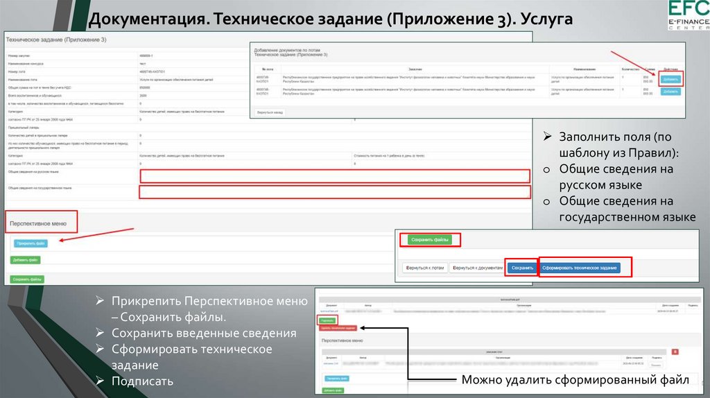 Техническое задание (Приложение 3). Заполнить – Сформировать.