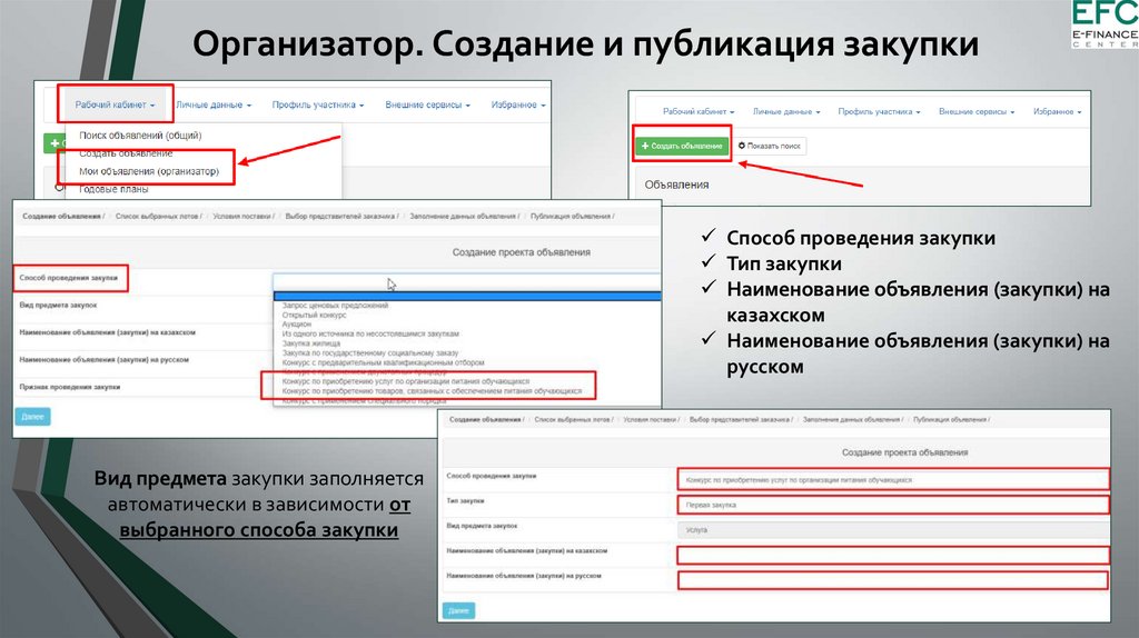 Организатор. Создание и публикация закупкиСпособ проведения закупки