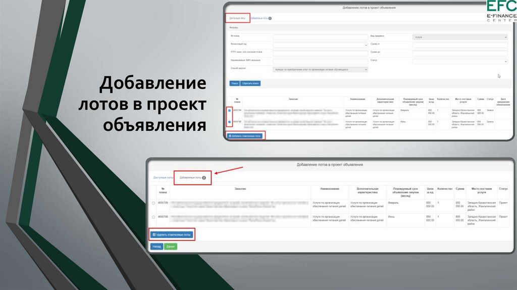 на основании данных заполненных на шаге добавления данных по лотам.