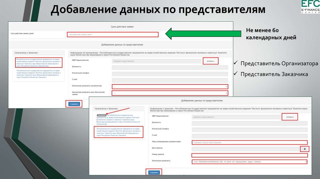 Добавление данных по представителямНе менее 60