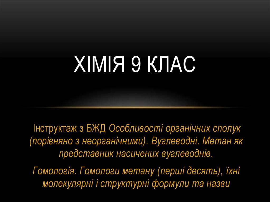 ХІМІЯ 9 КЛАСІнструктаж з БЖД Особливості органічних сполук