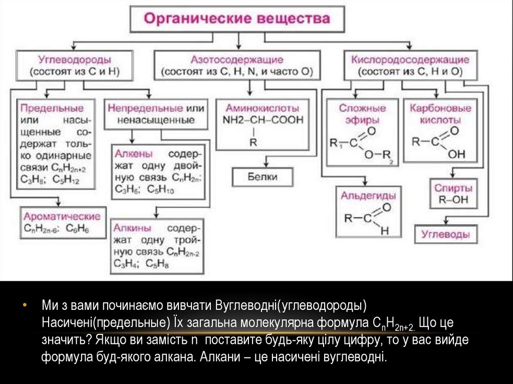 • Ми з вами починаємо вивчати Вуглеводні(углеводороды)Насичені(предельные) Їх загальна молекулярна формула CnH2n+2. Що це