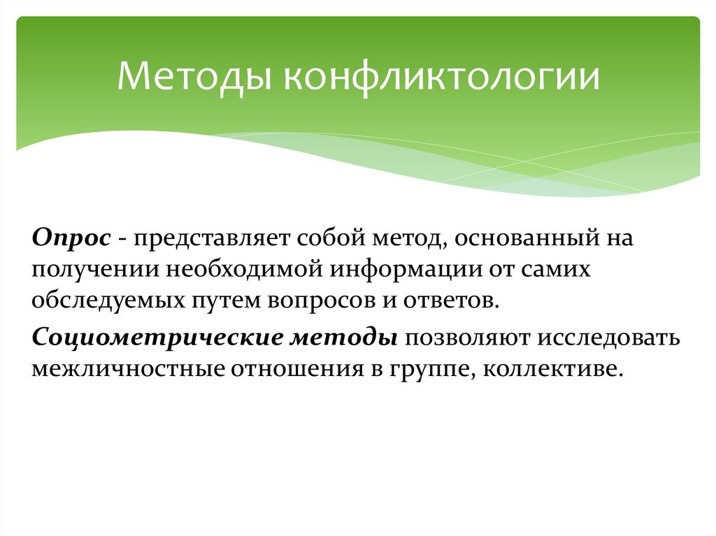 Методы конфликтологииОпрос - представляет собой метод, основанный на