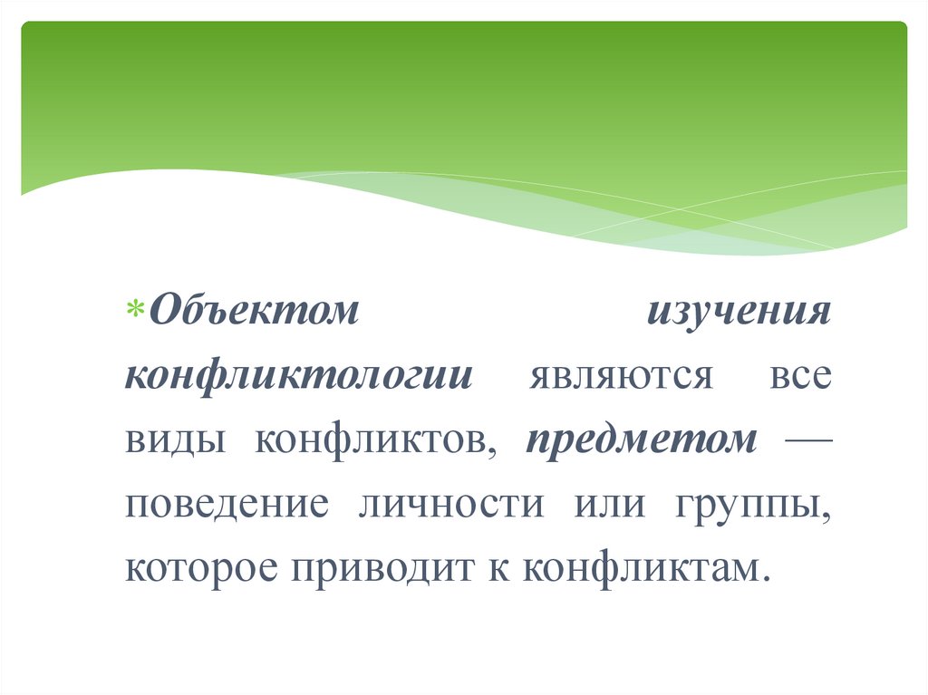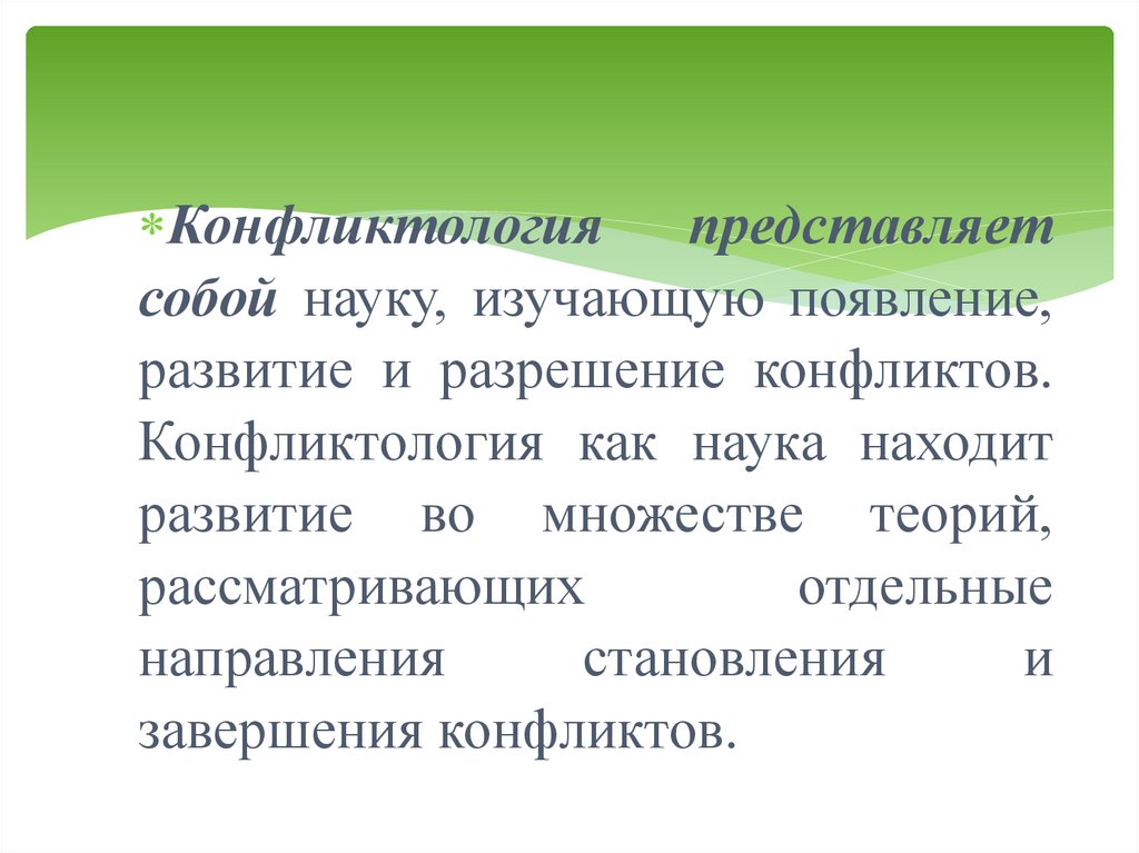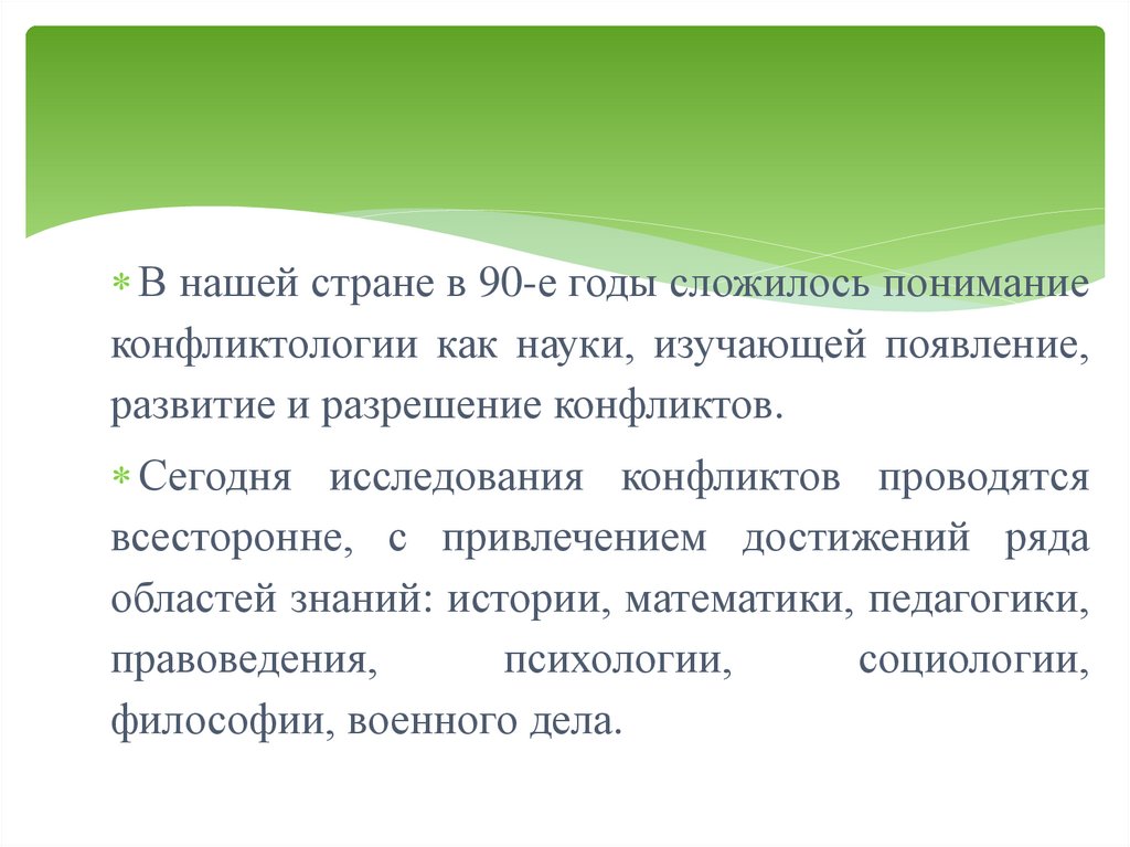 В нашей стране в 90-е годы сложилось пониманиеконфликтологии как науки, изучающей появление,