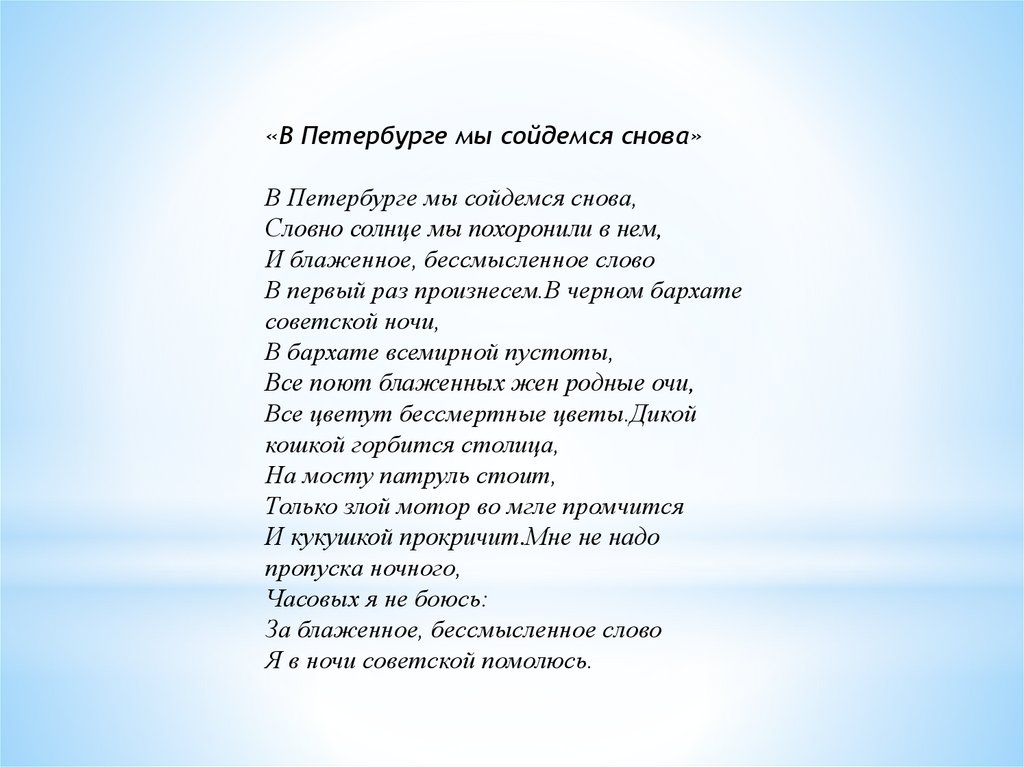 «В Петербурге мы сойдемся снова»В Петербурге мы сойдемся снова,