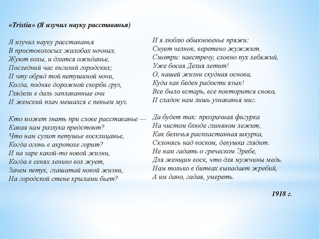 «Tristia» (Я изучил науку расставанья)Я изучил науку расставанья