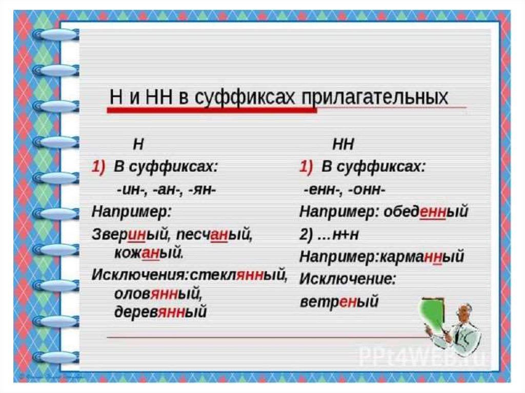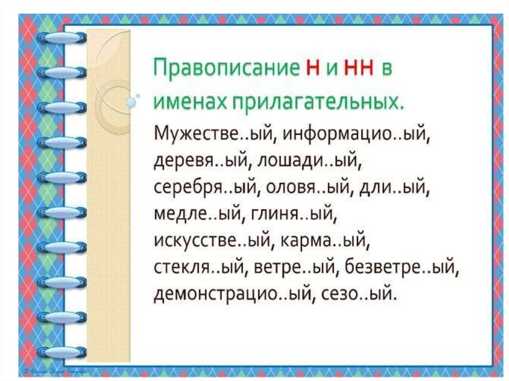 Н и НН в суффиксах имён прилагательных, образованных от имён существительных