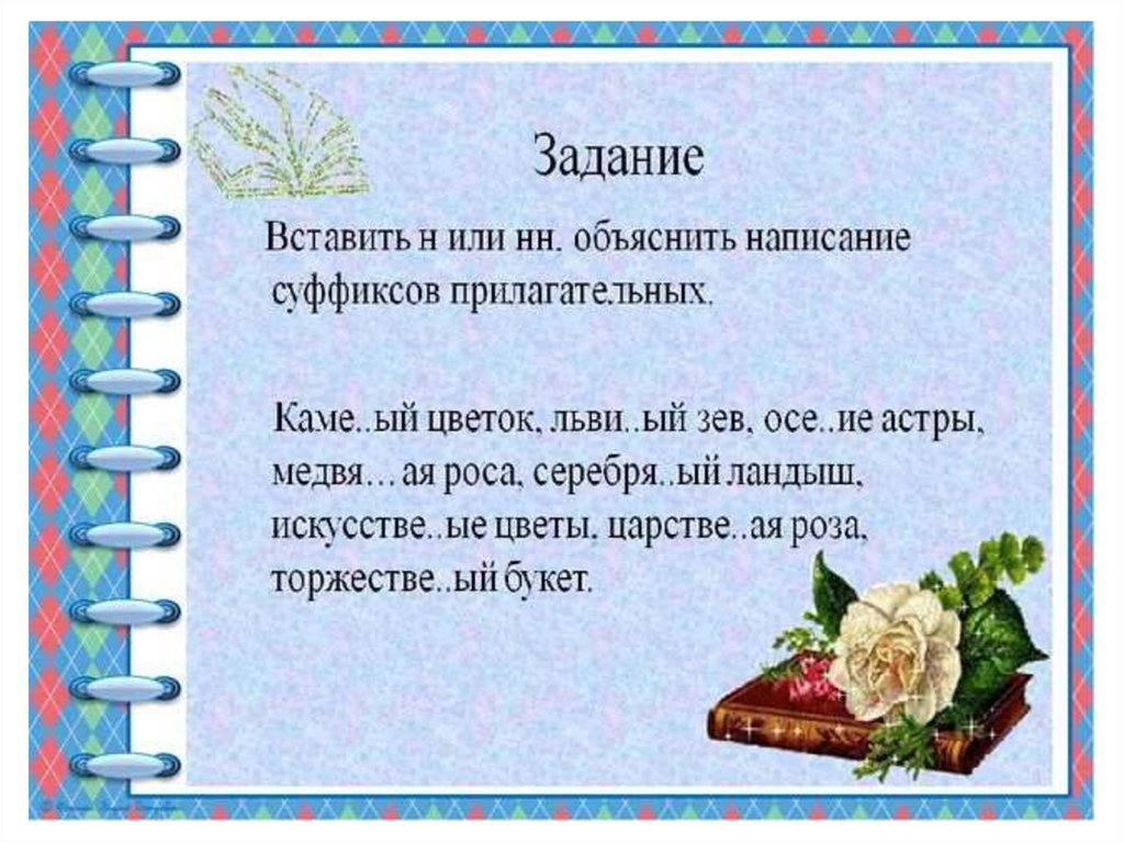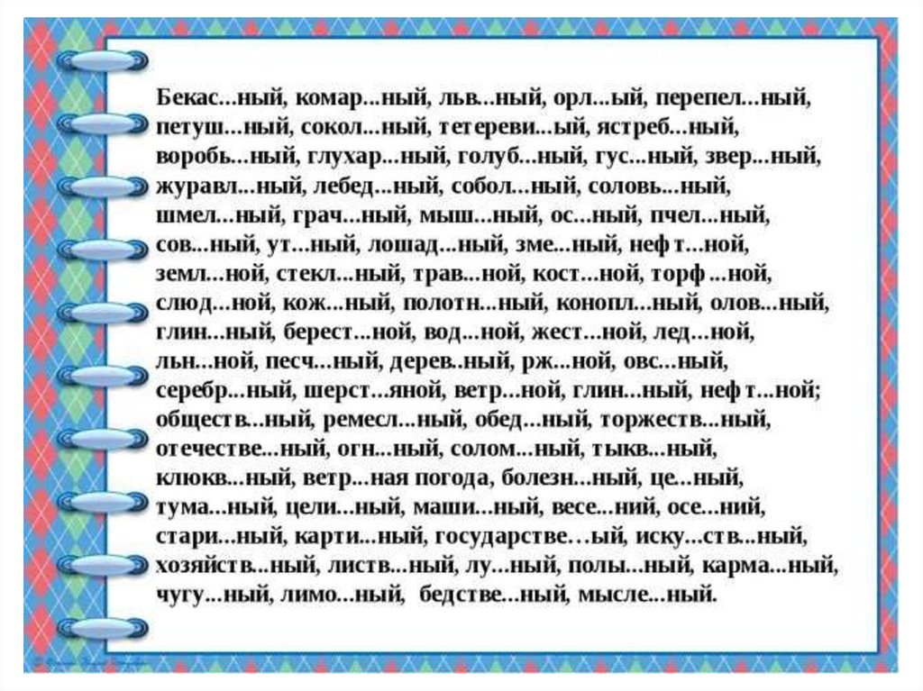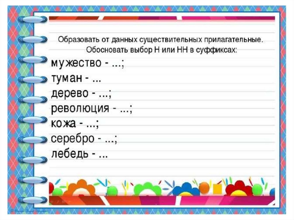 Правописание -н- и -нн- в суффиксах прилагательных, образованных от существительных