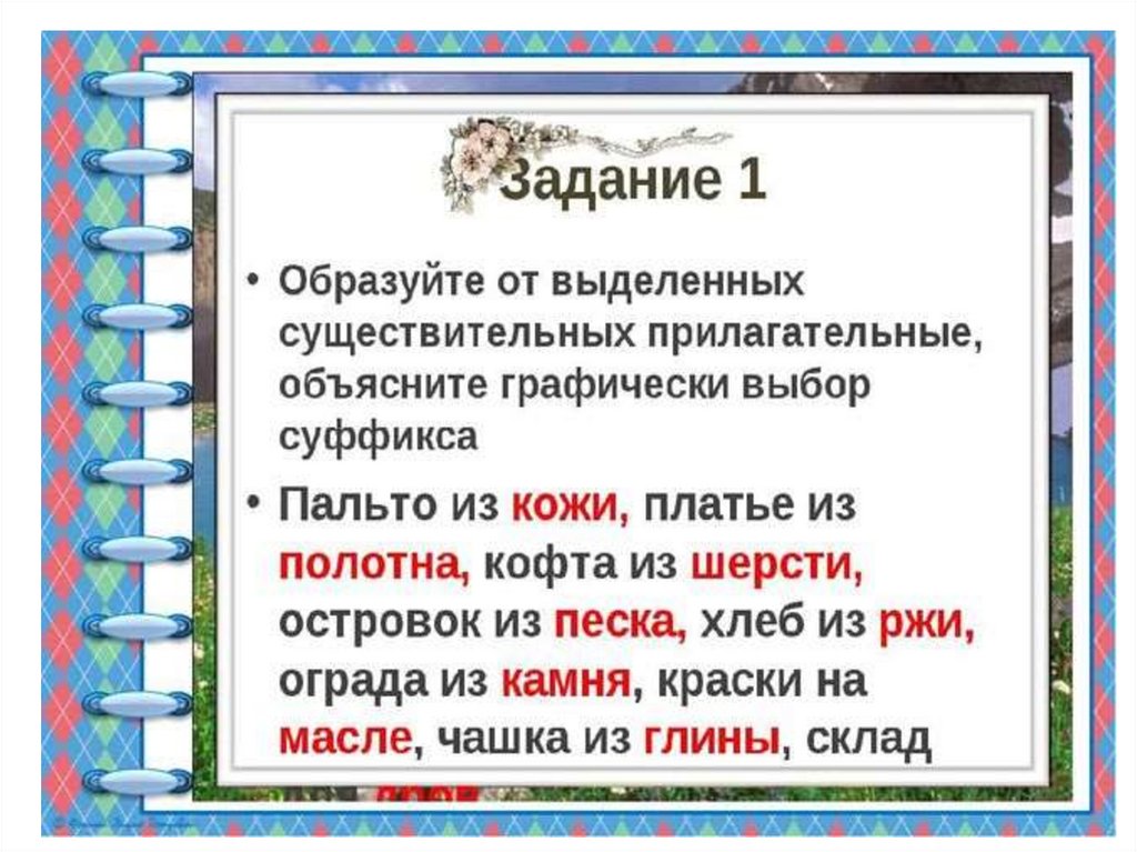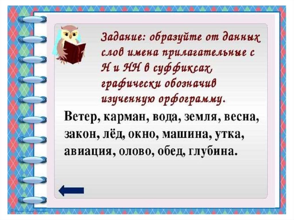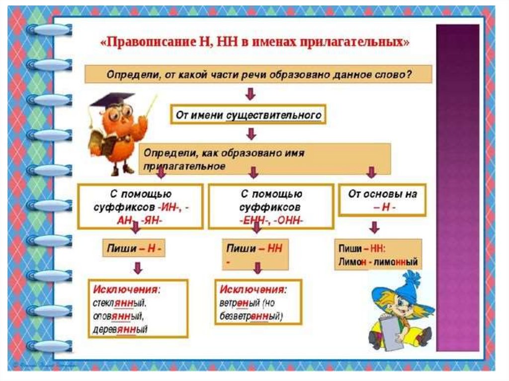 Правописание н и нн в суффиксах прилагательных, образованных от существительных. Основные способы словообразования