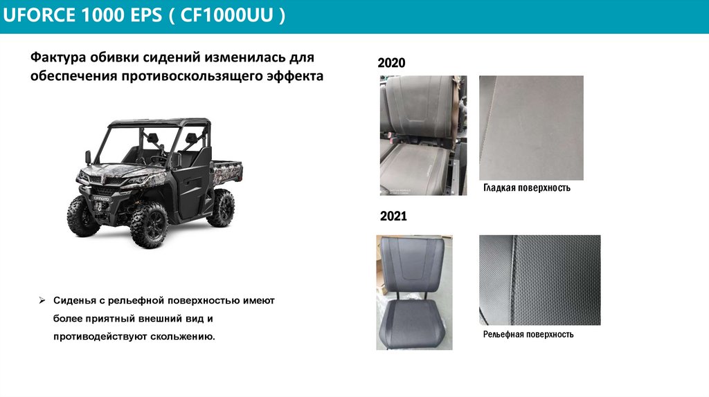 UFORCE 1000 EPS CF1000UUФактура обивки сидений изменилась для