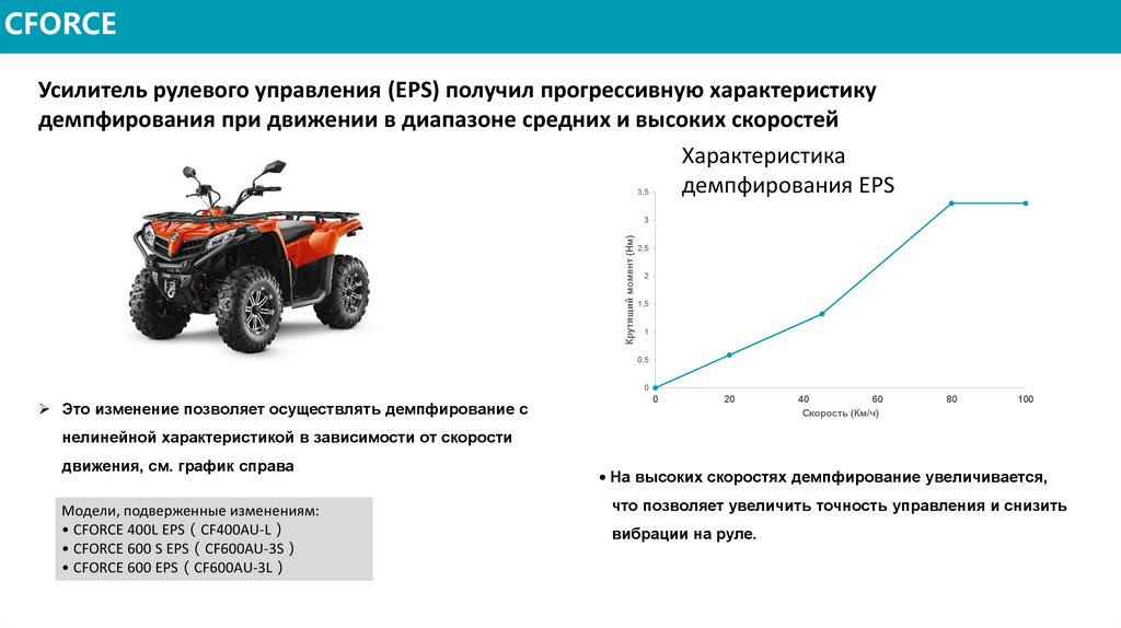 UFORCE 1000 EPS CF1000UUУсилитель рулевого управления (EPS) получил прогрессивную характеристику