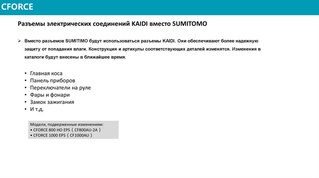 Вместо разъемов SUMITIMO будут использоваться разъемы KAIDI. Они обеспечивают более надежную