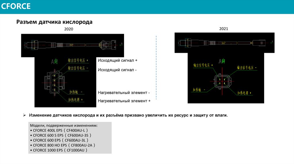 Изменение датчиков кислорода и их разъёма призвано увеличить их ресурс и защиту от влаги.