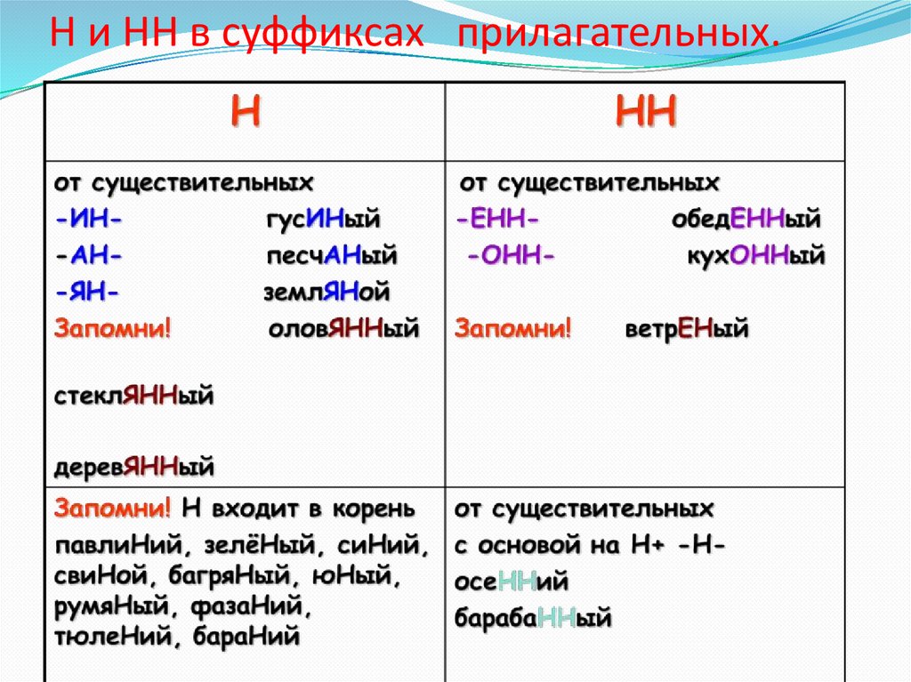 Н и НН в суффиксах прилагательных