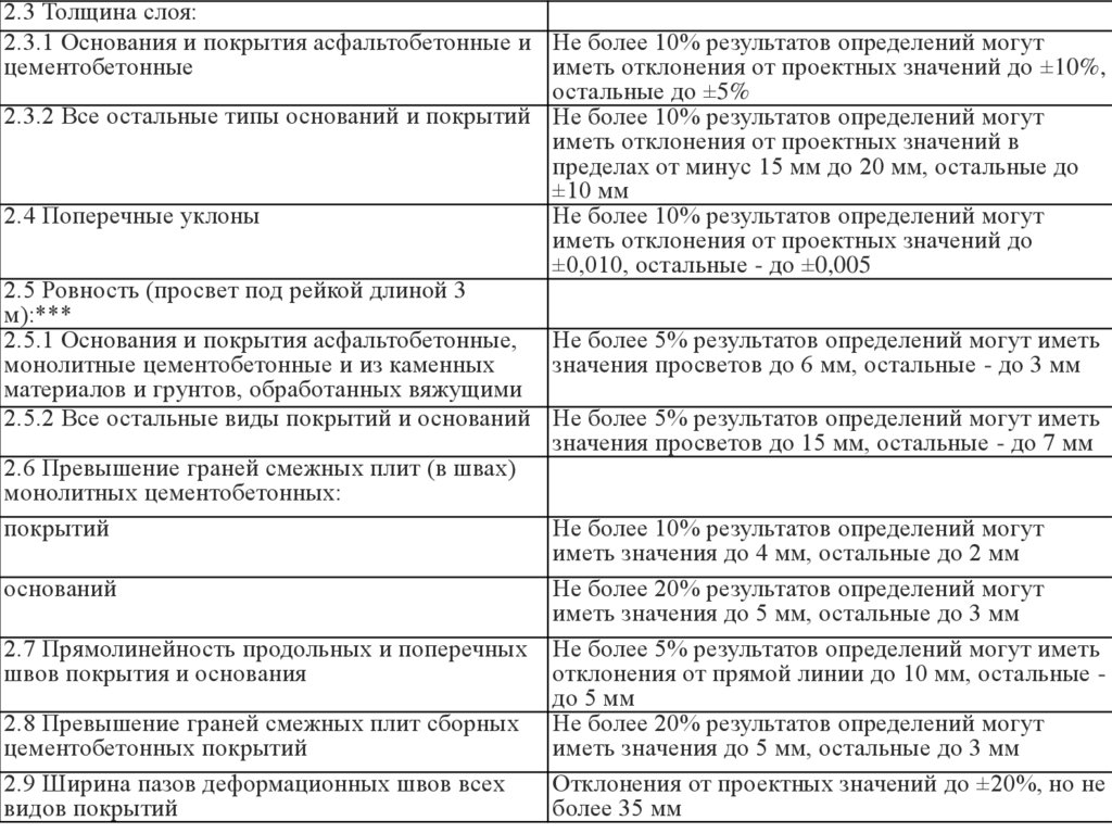 - ровность (просвет под рейкой длиной 3 м на расстоянии 0,75-1 м от каждой