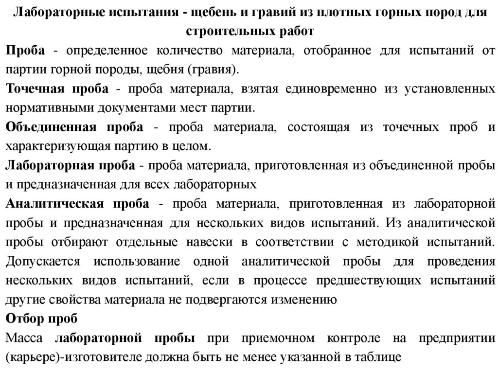Лабораторные испытания - щебень и гравий из плотных горных пород длястроительных работ