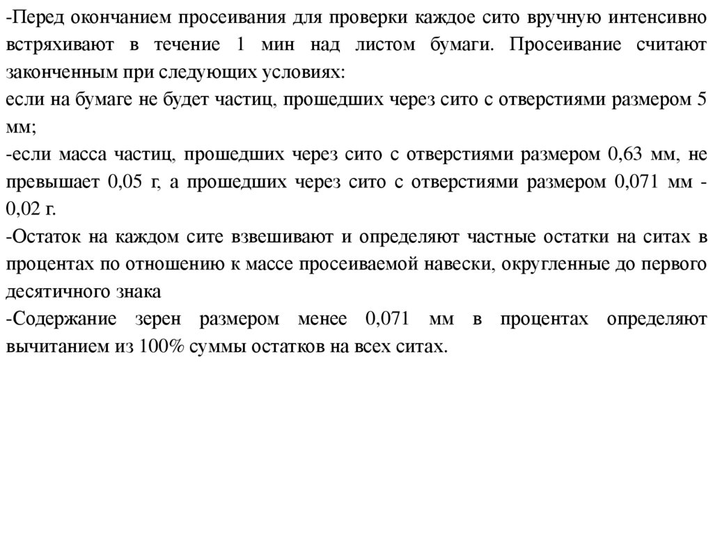 -Продолжительность просеивания должна быть такой, чтобы при контрольном