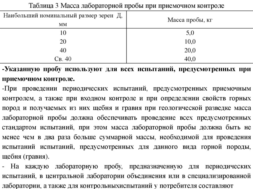 Таблица 3 Масса лабораторной пробы при приемочном контролеНаибольший номинальный размер зерен Д,