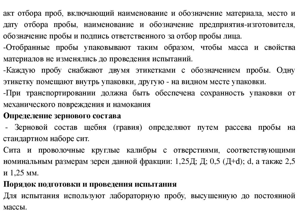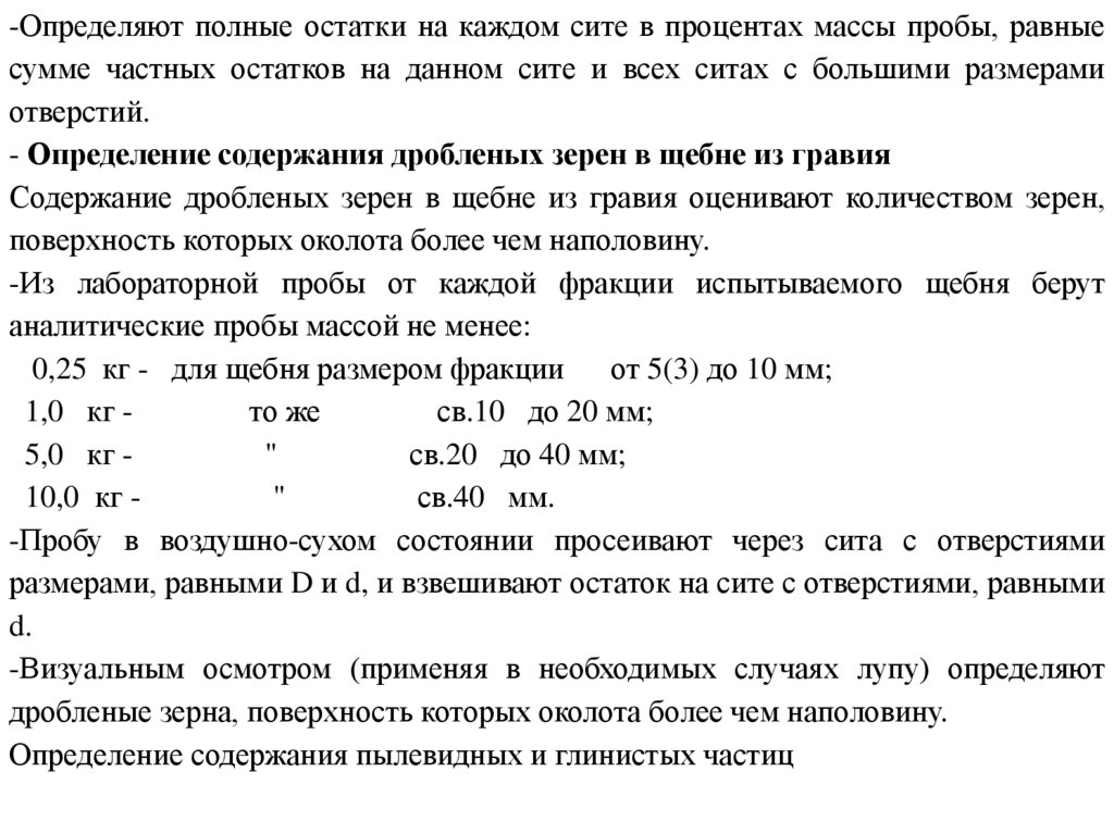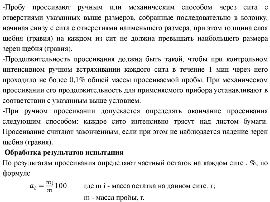 - Зерновой состав щебня (гравия) определяют путем рассева пробы на