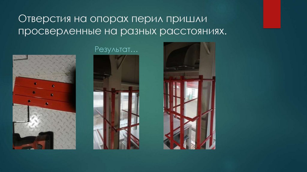 18. Опоры перил пришли с производства с ассиметричной сверловкой в зоне крепления опоры к сигме. Со слов производства – все по