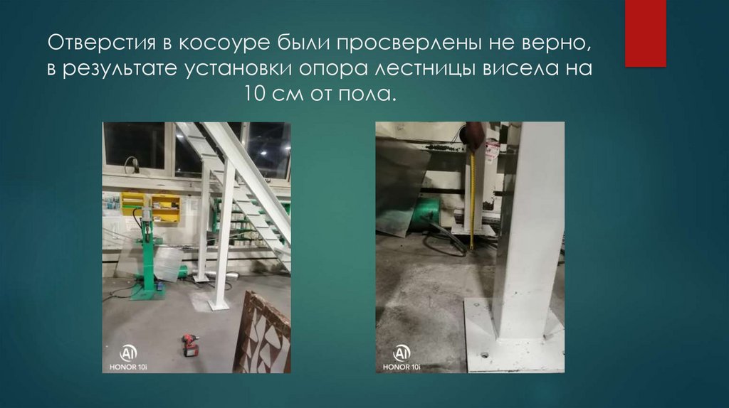 15. Отверстия под опору в лестничном косоуре были просверлены не верно, в результате установки одна опора висела в воздухе на